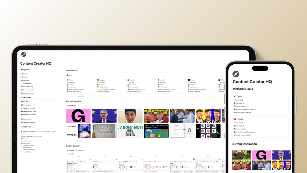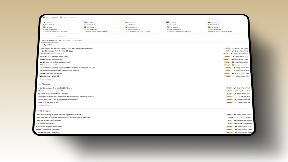 Use this Notion system to simplify content ideation, creation, planning, and repurposing across every social media platform at once.