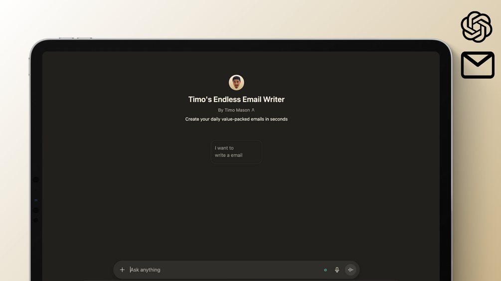 The Endless Email Writer GPT is built for solopreneurs, founders, coaches, and creators who have an email list but don't have the time to provide them with daily value.