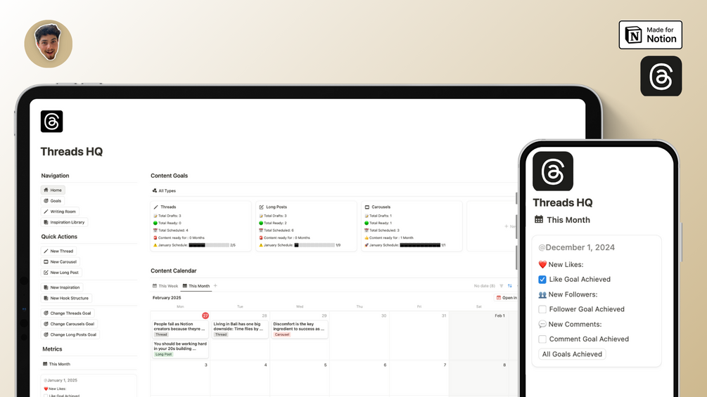 An all-in-one system to simplify content ideation, creation, planning, and scheduling on Threads from one unified dashboard in Notion.